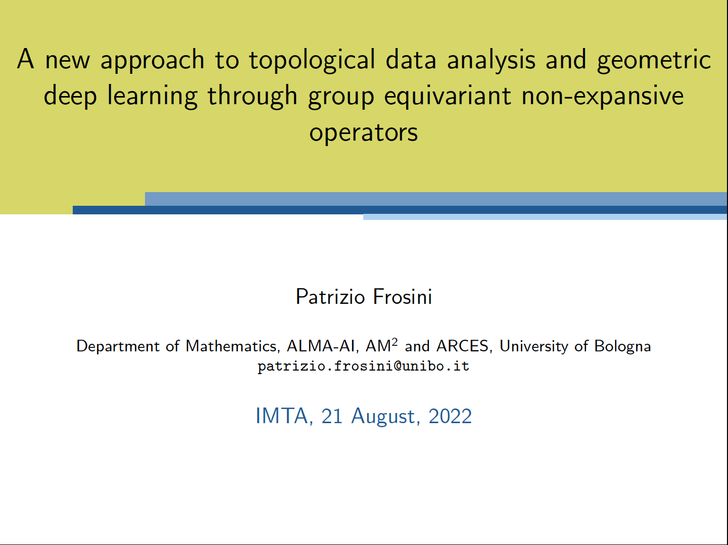 Patrizio Frosini "A New Approach to Topological Data Analysis and Geometric Deep Learning through Group Equivariant Non-expansive Operators" (Department of Mathematics, University of Bologna, Bologna, Italy);