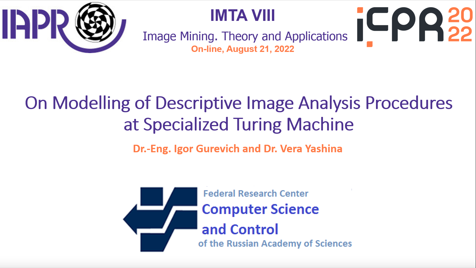 IMTA-VIII-2022, как и предыдущий семинар IMTA-VII-2021, проводился в рамках ICPR (в данном случае ICPR-2022) под эгидой IAPR. ICPR - главное научное событие в области распознавания образов, анализа изображений и прикладных научных и технологических областей.